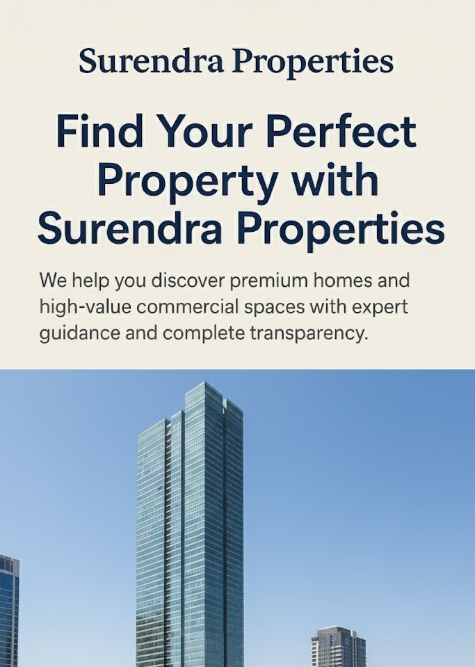 Find Your Perfect Property with Surendra Properties We help you discover premium homes and high-value commercial spaces with expert guidance and complete transparency.